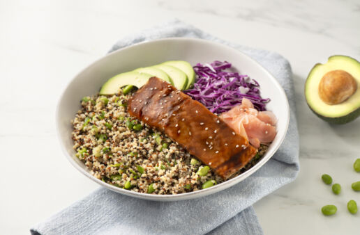 Asian-inspired and downright tasty, this Quinoa Edamame Power Bowl with Salmon is sure to fill you up and leave you feeling satisfied!
